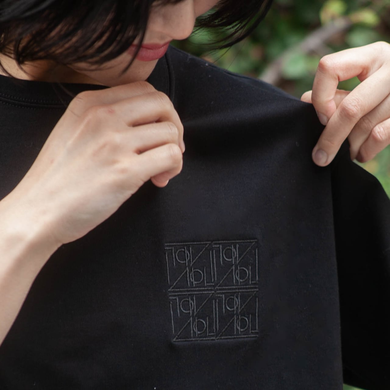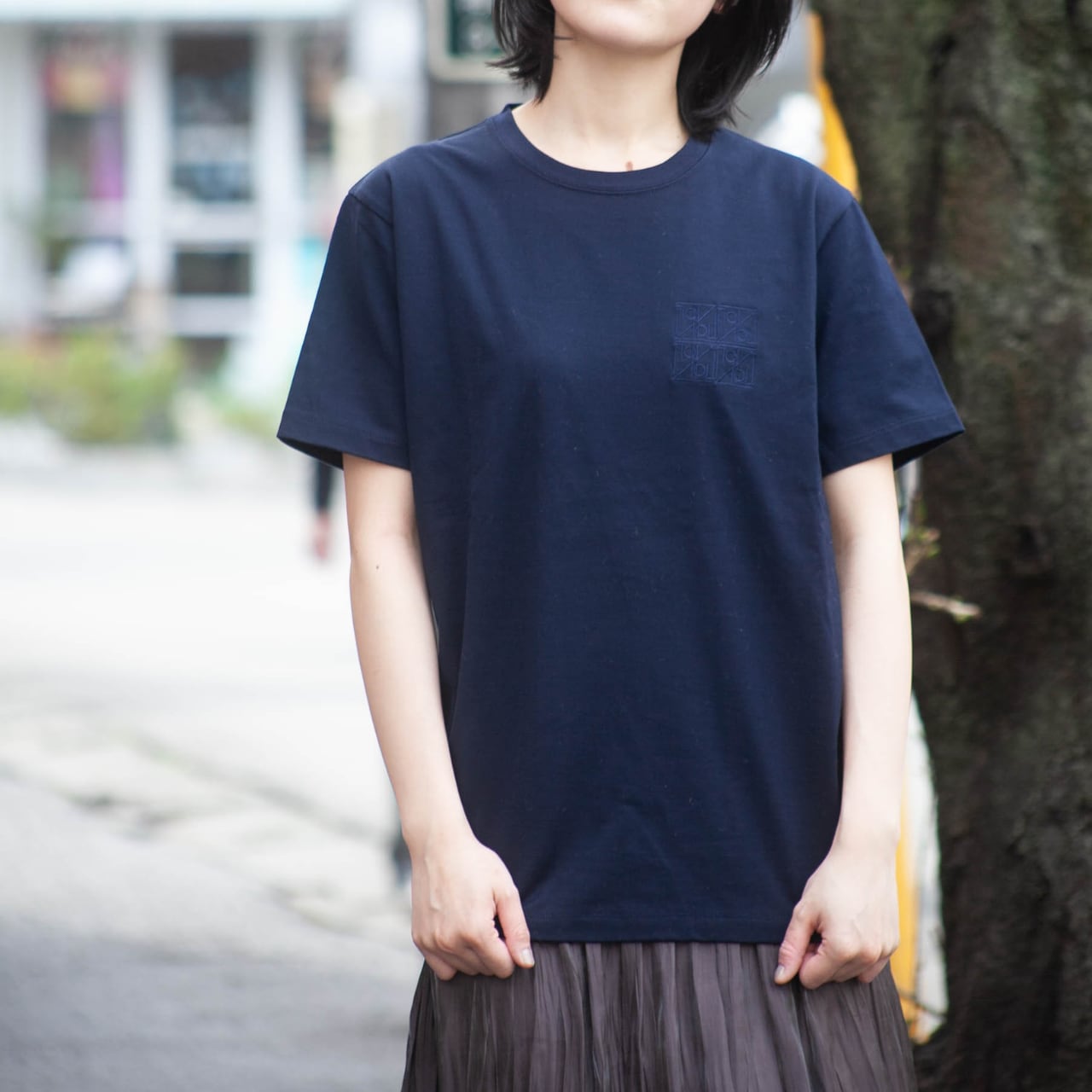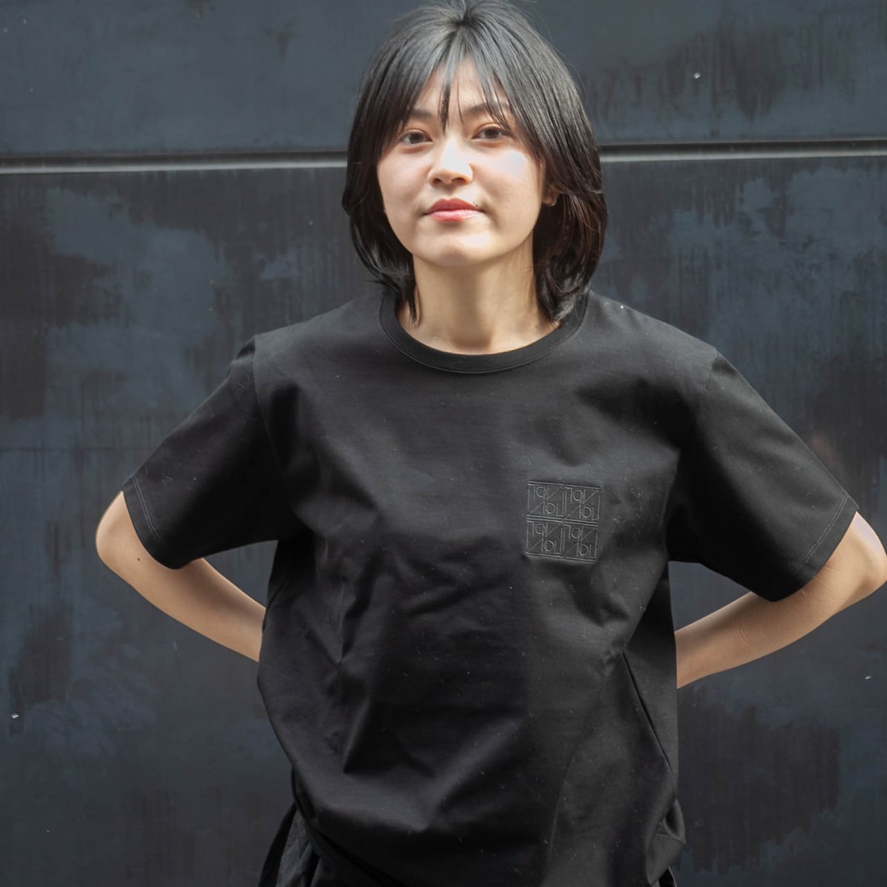 胸元の 8つのロゴ刺繍 が、大人の装いにちょうどいいバランスをつくります。