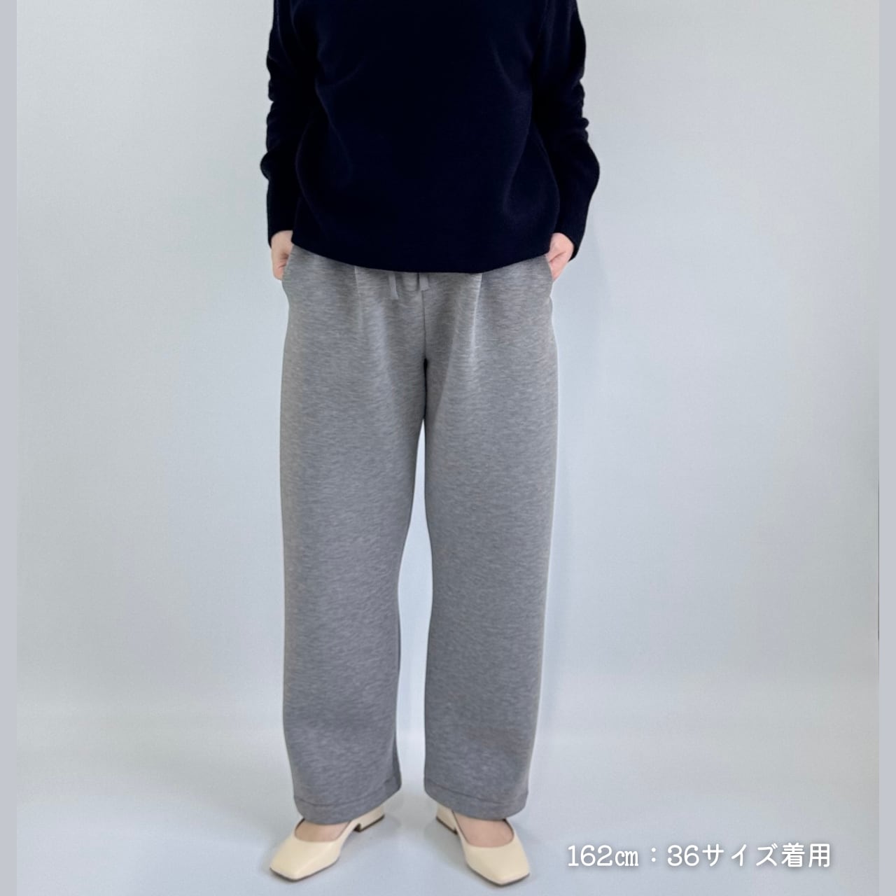 ウエストにタックを入れた、シンプルなワイドシルエットで、リラックス感がありながら、