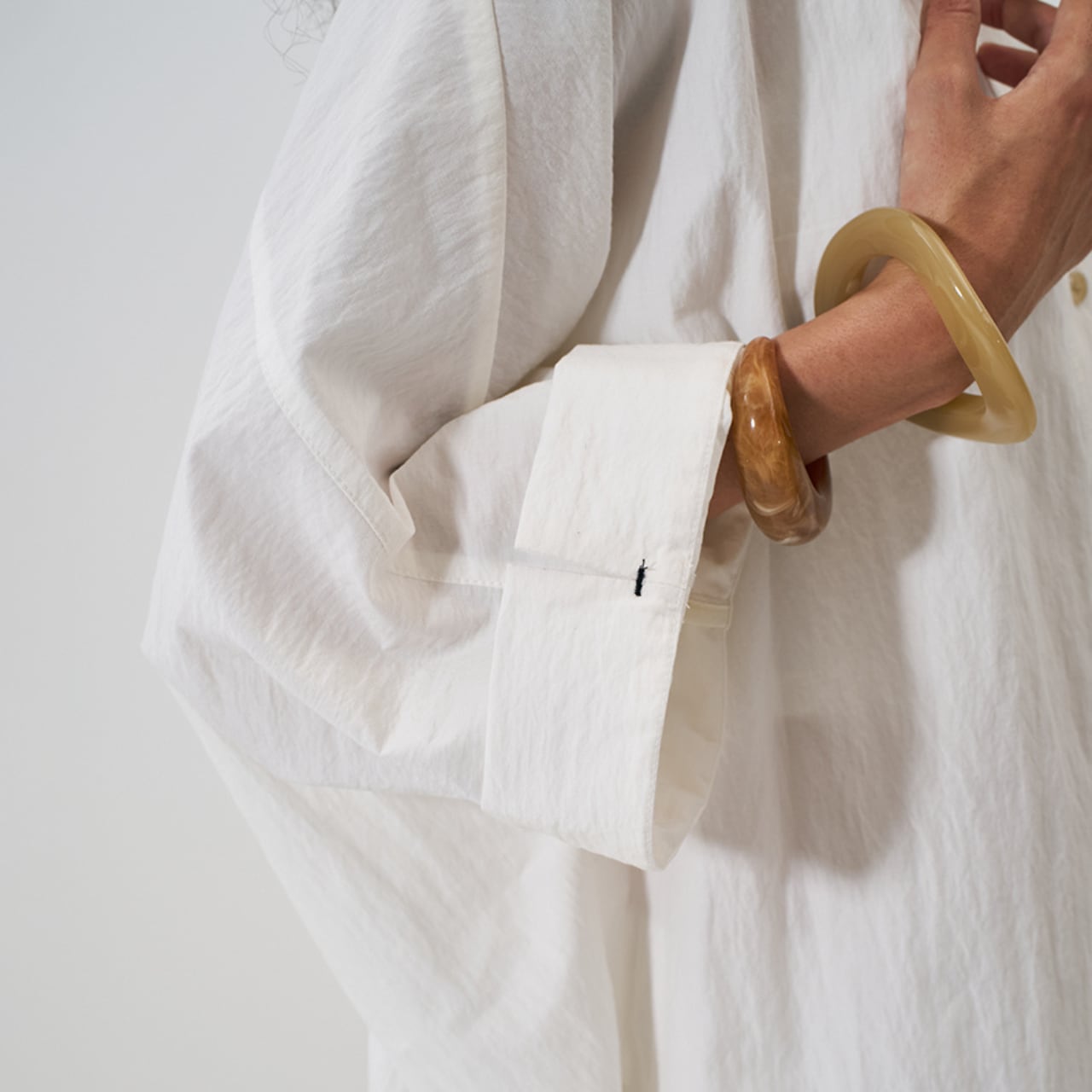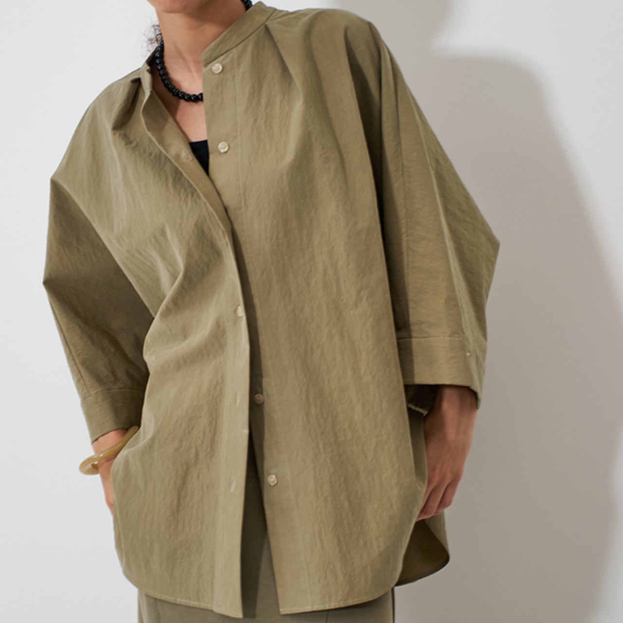 ほどよいハリがあり、身体から自然に離れることで、立体感のあるシルエットをつくります。