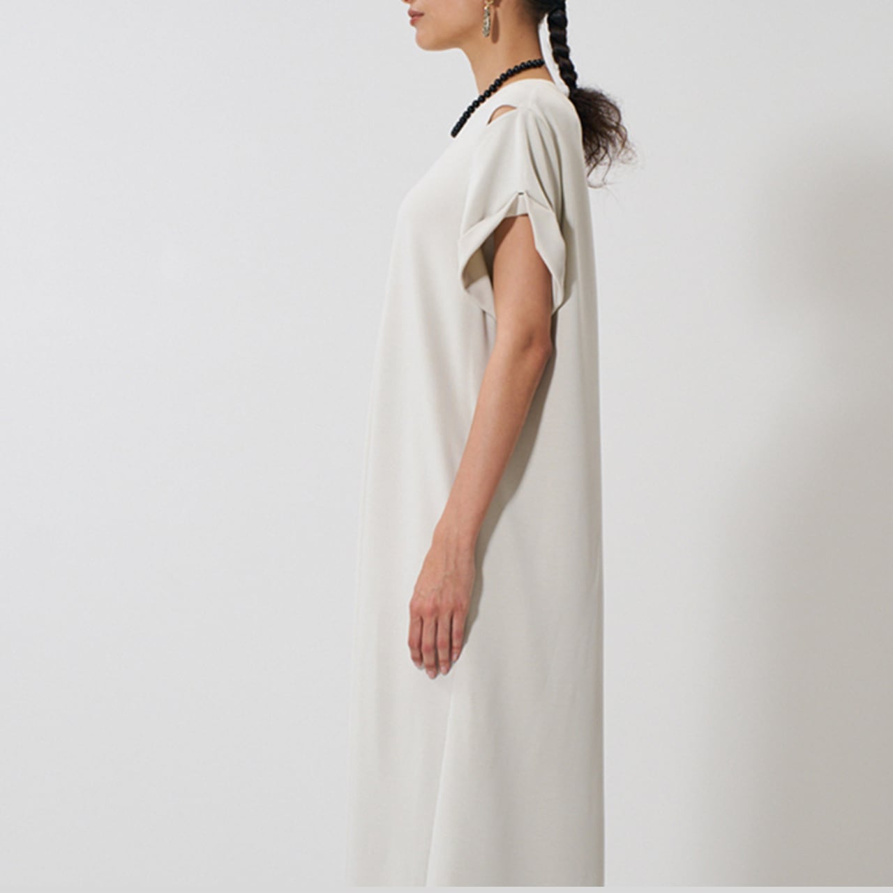 汗じみが目立ちにくく、上品に着られる大人のTEEワンピース。