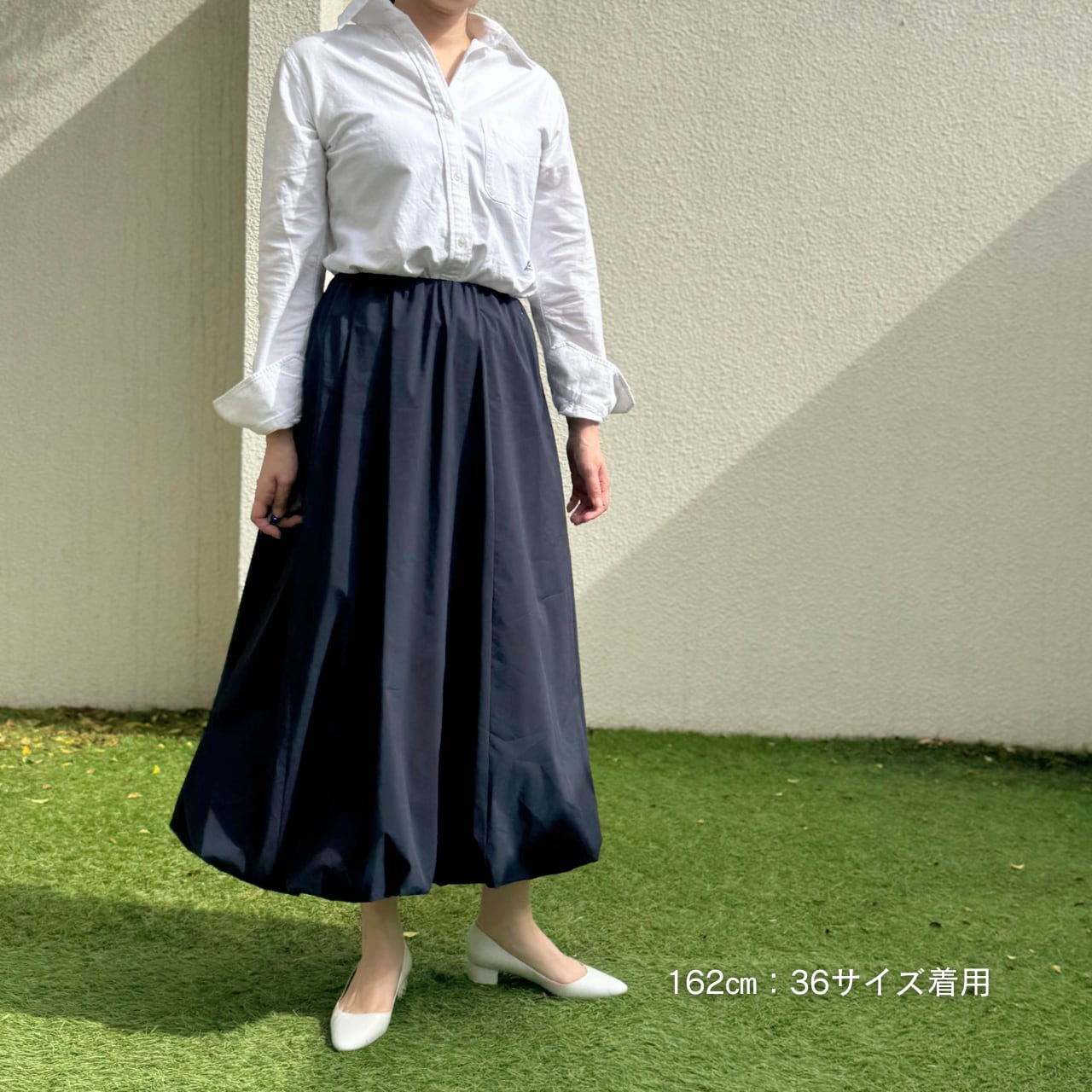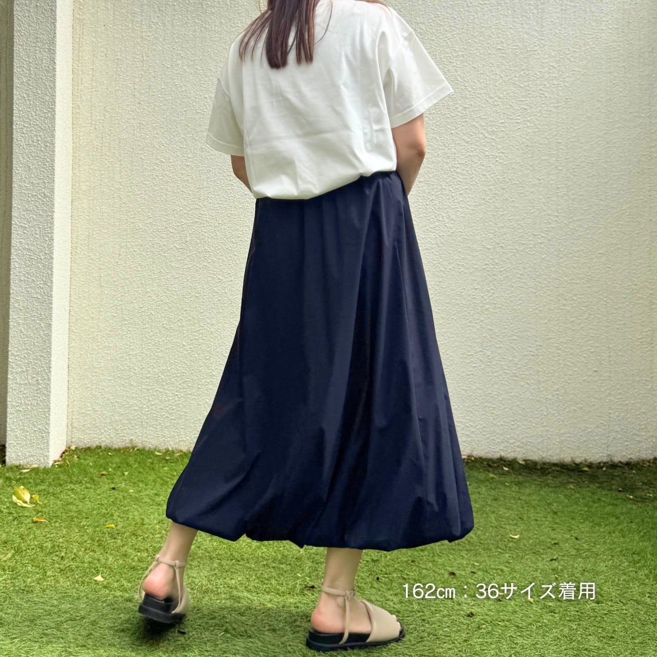 シンプルなトップスと合わせるだけでバランスよくまとまります。