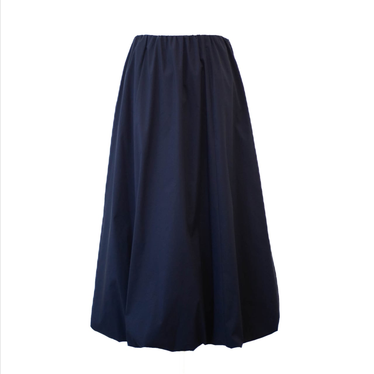 ハリのあるタイプライターストレッチ素材で、立体感のあるシルエットに仕上げたバルーンスカート。