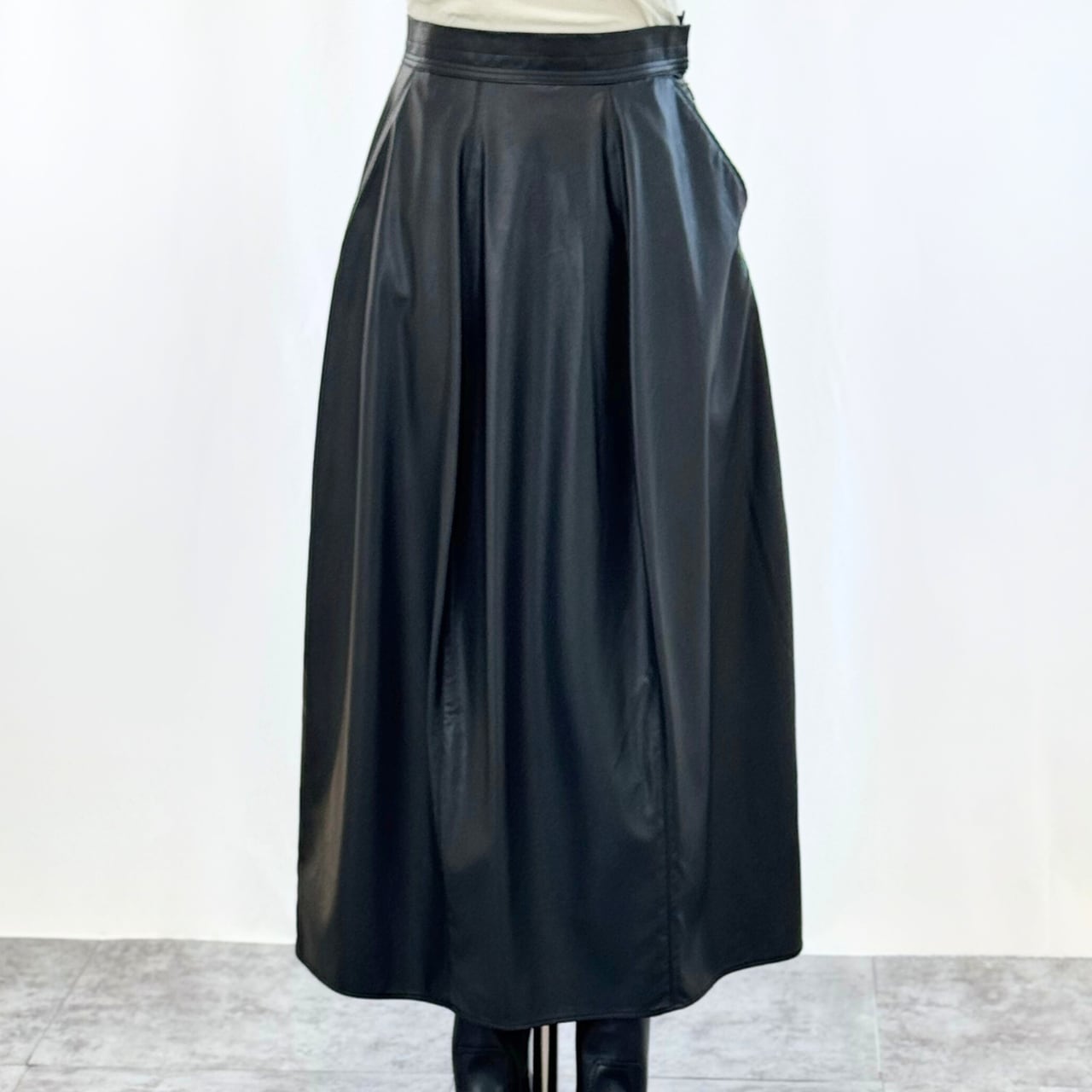 柔らかく軽やかなフェイクレザーで仕立てた、日常に寄り添うフレアスカートです。
